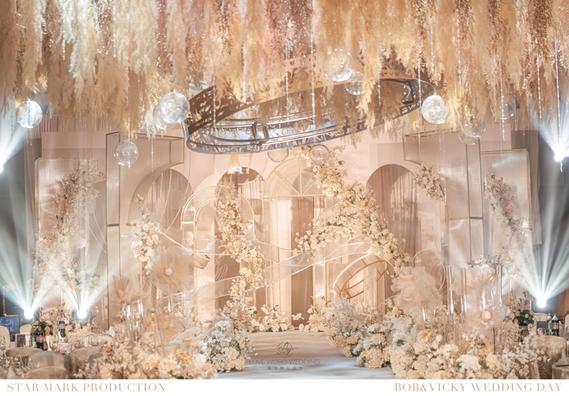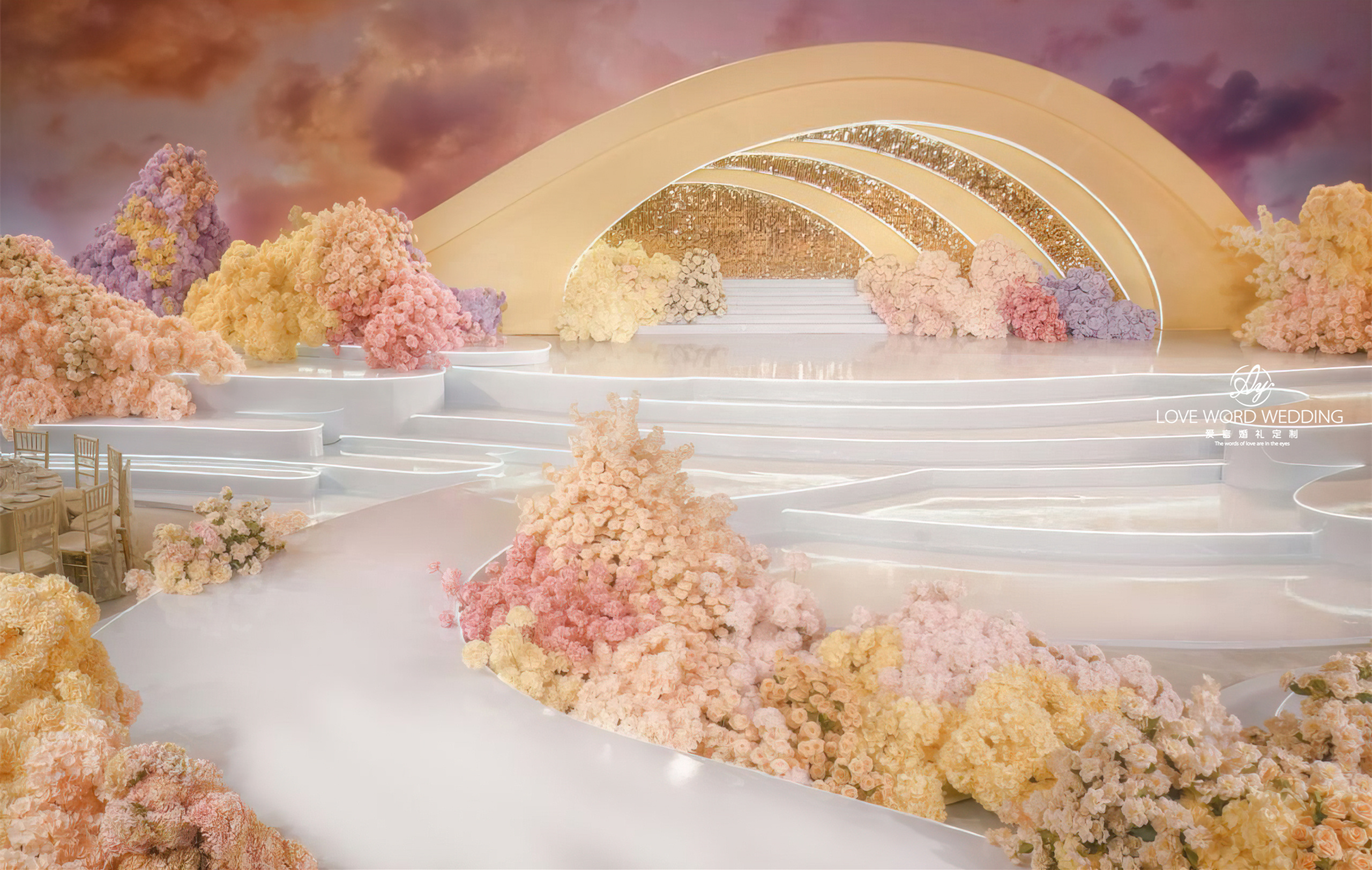Love Word 爱言婚礼的设计理念坚持为每一对新人打造专属于自己的定制婚礼,集结业内顶尖团队,不论是摄像摄影、婚礼司仪, 还是婚礼现场的布置和气氛营造,都经过严格筛选反复斟酌,均力致呈现高品质的婚礼盛典,360°全程服务,精致完美微处。